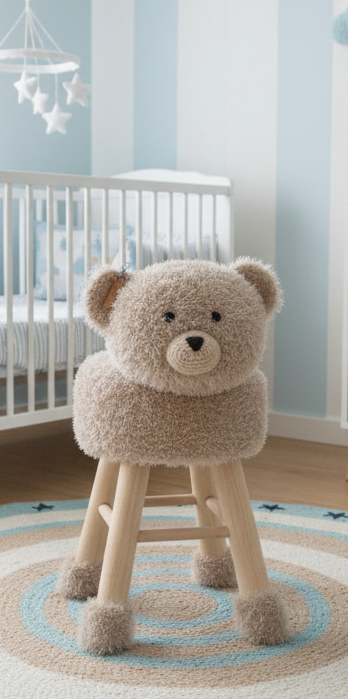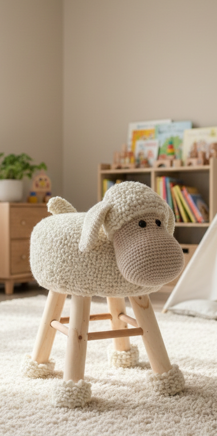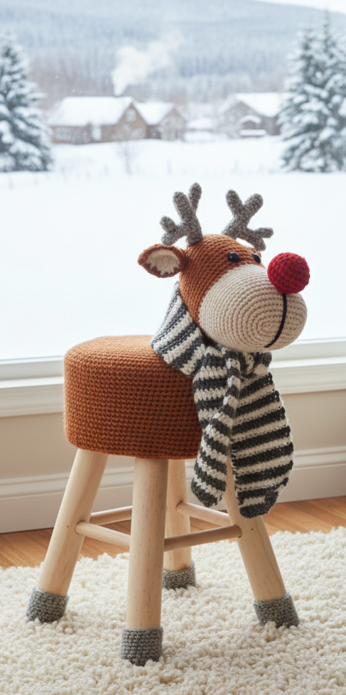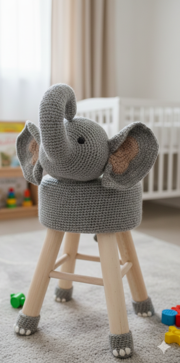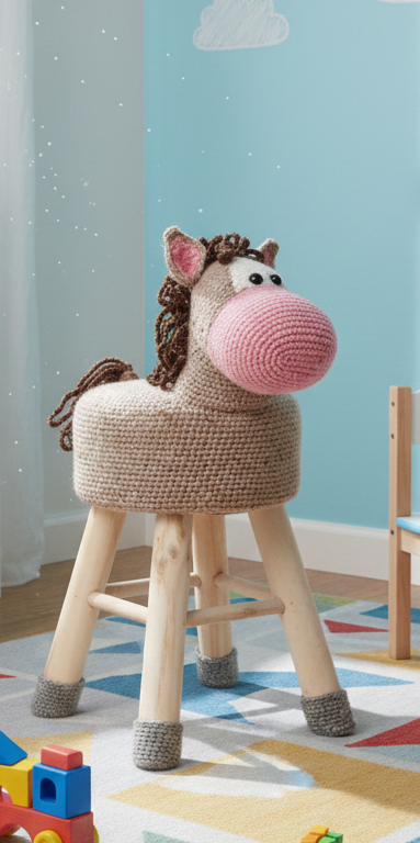 Vous crochetez vous-même la housse avec l'animal pour le tabouret !