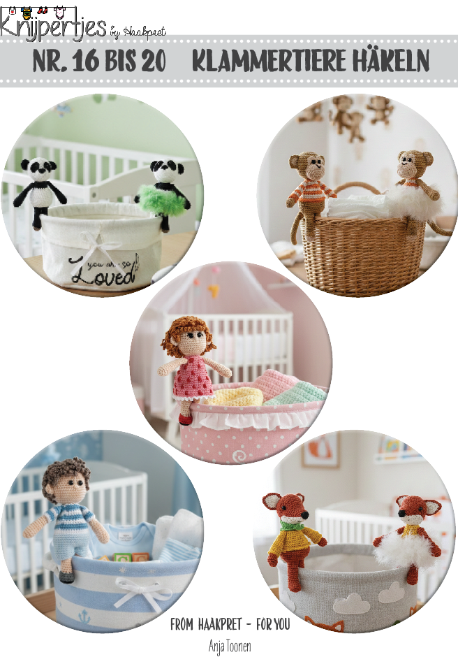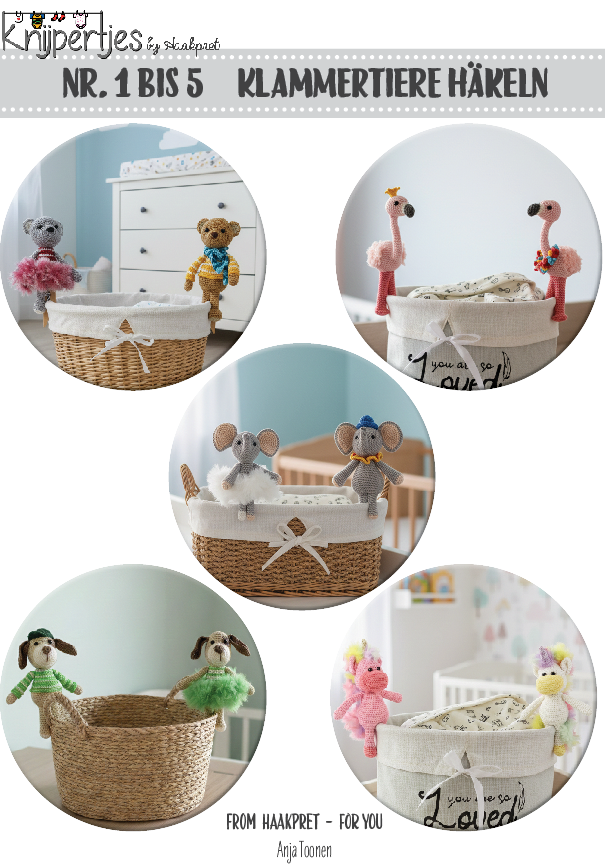 Dies sind 5 Motive aus einer Serie von 20. In dieser PDF-Datei finden Sie folgende Tiere: