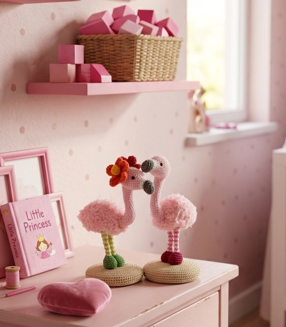 De Flamingos worden gehaakt met naald 1,5 (kan natuurlijk ook 2,5 met dikkere haakkatoen) en worden dan 14cm hoog.
