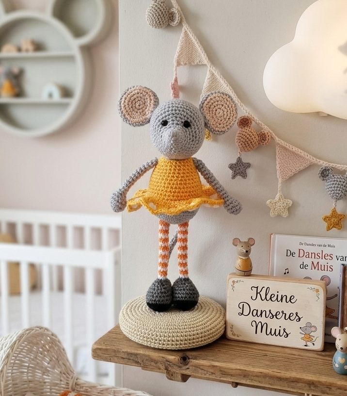 De muisjes worden gehaakt met naald 1,5 (kan natuurlijk ook 2,5 met dikkere haakkatoen) en worden dan 12cm hoog.